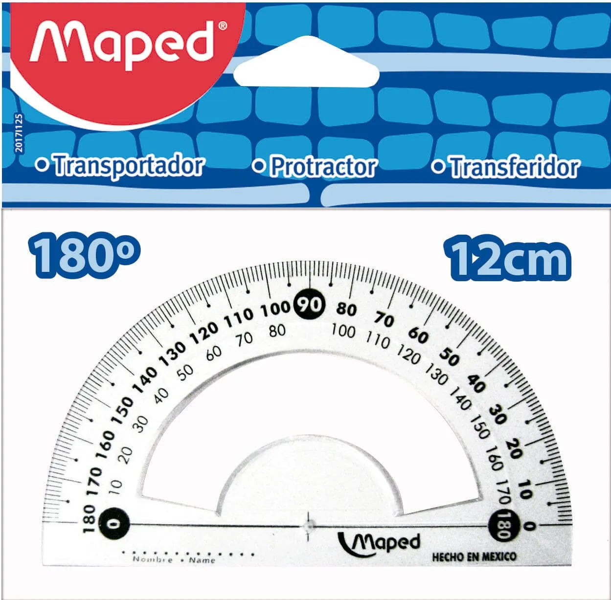 Un rapporteur semi-circulaire en plastique transparent / un transportador semicircular de plástico transparente